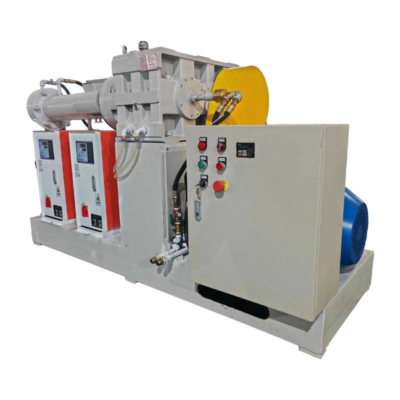 冷喂料擠出機(又稱橡膠冷喂料壓出機、銷釘式冷喂料擠出機、銷釘機筒冷喂料擠出機、主副螺紋冷喂料擠出機、冷喂料排氣擠出機、復合式冷喂料擠出機、普通冷喂料擠出機、冷喂料膠塊擠出機)是在常溫下直接吃入橡膠膠料,通過螺桿剪切、壓縮與溫控系統實現低溫塑化、排氣和連續擠出的關鍵設備。相比傳統熱喂料方式,它省卻了熱煉工序,能耗降低 20 %–35 %,膠料溫升低、焦燒風險小,已成為輪胎、膠管、密封條、電纜等橡膠制品高效生產的核心機型。