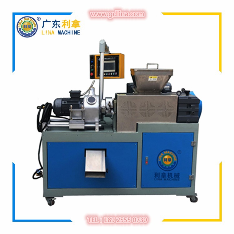 雙錐式橡膠高速造粒整套設(shè)備,置于機筒進料口上部的雙錐強制喂料,吃料能力強,迫使經(jīng)密煉機塑煉后的團狀物料強制進入螺桿旋槽內(nèi),在螺桿轉(zhuǎn)動下向前推進,當(dāng)物料逐漸進入模腔時內(nèi)部壓力隨之增加,經(jīng)口模形成連續(xù)、密實的小圓柱條擠出成型。后配模面熱切風(fēng)冷式切粒裝置。主電機與切粒電機采用變頻調(diào)速,能調(diào)節(jié)物料的速度與粒子的均勻度。機筒螺桿均采用38CrMoAlA優(yōu)質(zhì)合金鋼,經(jīng)氮化處理,硬度高,耐磨耐腐蝕。匹配高強度硬齒面減速器,齒輪(軸)采用高強度合金鋼經(jīng)滲碳淬火恒溫磨齒加工,齒輪精度高、硬度高。配置有高承載能力的推力座,承載能力高,傳動平穩(wěn)、噪音低、高效等特點造粒機過程中的強度可以調(diào)整。通過調(diào)節(jié)軋輥的壓力,控制成品強度,循環(huán)操作,實現(xiàn)連續(xù)生產(chǎn),成品產(chǎn)量高。無干燥工藝,常溫造粒,一次成形。
